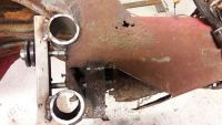 Sveiste til ny innfestning til forstilling. Dreide ned ein 24mm 8.8 bolt og sette nye innvendige gjenger i den.