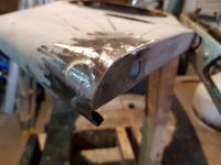 Nå begynner det å bli bra stand på selve karosseriet, så jeg har begynt å flikke litt på skjermene. Høyre bakskjerm først ferdig.