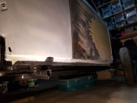 Regner med å være ferdig med sveising/etsprimer og grovsparkling i løpet av neste uke. Etter det blir det å vente på noen deler, og temperatur nok til grunning/lakking.