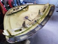 Har fått tak i et motorlokk som er riktig for denne modellen Glad Hengslene og bakstykket har blitt reparert en gang, så det blir en transplantasjon