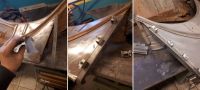 Så laget jeg at par trebiter med riktig bue og bolthull på riktig sted. Klemte en platebit mellom og banket ned kanten. Brukte en falsetang for å lage den siste profilen. Neste blir kapp og sveis på denne biten.