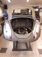 Leverte den til Berntsen Karosseri for å få trukket ut litt bulker i bakenden. Fikk den opp på jiggen og festet den ved å ta av torsjonslokkene bak og skru fast tykke stålplater der som ble skrudd fast i jiggen. Så var det å feste klyper, og trekke/jekke samtidig som det ble slått på bulkene.