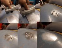 Han måtte også lage en bøyle for å få bedre feste i skjermfestene. Her har tidligere eiere trukket vel mye i bolthullene, så derfor måtte belastningen spredes på flere hull. Greit med reservedeler som har riktig fasong.