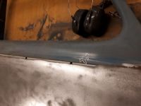 Var litt fler steder som trenger litt sandblåsing, så må nok snart på med verneutstyret. Men regner med jeg tar småpunktene midt på dørskinnet med punktsandblåseren for ikke å deformere fasongen på den plata.