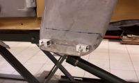 Laget også til noen rørbiter, slik at jeg kunne skru på noen små hjul i karosserifestene foran tanken og i innerskjerm bak. Da ble karosseriet enkelt å skyve rundt i verkstedet.