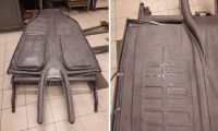 Fordypningen der festene for gummimatta skal være, laget jeg ved å slå på en kule og mothold med hull i. Resten ble dunket med hammer og diverse mothold.