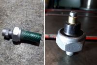 1.jpg (57.61 KB. 800x424 - vist 560 ganger.) Fant en gammel oljetrykksbryter med skrutilkobling som jeg testet. Måtte maskere litt før glassblåsing/vannpolering. Var et VW merke på den også.