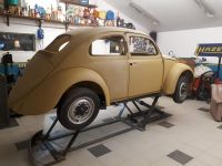 Hadde en samling i garasjen med andre veteranbilfolk, så da benyttet jeg anledningen til å få løftet karosseriet opp på bunnplata igjen.