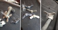 Det ble temmelig vellykket på første forsøk, så da kunne jeg kutte de løs. Hadde tettet igjen gjengepartiet når jeg laget forma, for regnet ikke med at gjengene var mulig å støpe uansett. Sa da var det bare å bore å gjenge litt før de passet der de skal være.