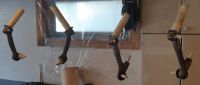 Så gikk han løs på alle smådeler som skal monteres tilbake på plata, og de minste delene sandlåses for å bli pulverlakkert mens de litt større, som bærearmene, får en runde med syregrunning og lakk: