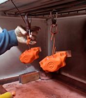For å få litt avvkeksling fra rustsveising, tok han et avbrekk, og demonterte kaliprene, og ga de en runde med rød pulverlakk før de fikk nytt pakningssett og nye klosser: