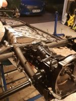 Har gått litt smått de siste dagene, men litt fremdrift er det i alle fall, og akselrør og halve girkassa har fått en dusj med mattsvart: