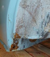 received_674038946913145.jpg (34.17 KB. 458x600 - vist 870 ganger.) Innerskjermene rundt hele fikk seg en runde med stålbørste og syregrunning, og her kan man se tidligere reparasjoner både nede ved kanalen og at hele fronten er byttet: