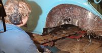 Har blitt litt lenge mellom oppdateringene her, men vi jobber ufortrødent videre med å holde liv i forumet her, så da fortsetter jeg å oppdatere prosjekttråden  Etter konfirmasjonen var over, begynte han (Atle) jobben på karosseriet, og vi mistenkte at bak dette her så ville vi finne litt grums: