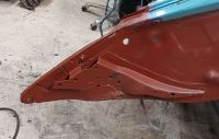 Siste litt store operasjon før klargjøring til lakk er å fikse "quarter panel" på venstre side. Her kan man se at skjermen ikke ligger innat karosseriet:
