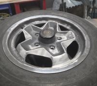 Atle innser at våren nærmer seg, så før vi har fått hentet hjem motoren fra feriekoloni, har han endelig fått begynt på disse felgene. Den første er slipt og grunnet. Bare 3 igjen Glad