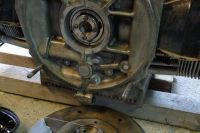 Vi fant årsak til lekkasje ved svinghjulet, det manglet både simmering og shims.