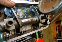 Motoren til Dyret har fått seg Gene Berg vippestell og JayCee støtstangrør. Fant så ut at jeg må frese 1,2mm av toppen på ventilstyringene for å få nok klaring mellom talerken og styring.