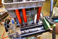 Motoren til Dyret har fått seg Gene Berg vippestell og JayCee støtstangrør. Fant så ut at jeg må frese 1,2mm av toppen på ventilstyringene for å få nok klaring mellom talerken og styring.