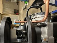 Jobber litt med bensin oppsettet på torpedoveggen. Så blir det bulkhead igjennom veggen. Blir rør ifra blå/ rød fitting og opp i luftfilterhuset.