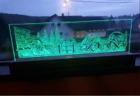 Fant ut at min lille 3,5Watt laser kunne gravere i glass, så da måtte den jo brukes til noe fornuftig. Må ha litt tynn papp under som laseren fokuseres på, så motivet er veldig synlig mens det brennes. Når glasset vaskes etterpå blir det nesten usynlig igjen.