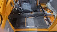 Interiøret står for tur. Stolfestene har jeg gjort klar tidligere, men gjenstår å legge teppesett og lage hull for festene i teppet. Så ut med stolene igjen, og legge tepper. Merker nå at jeg har gjort en nesten for god jobb med de festene. Mulig jeg kunne laget en litt enklere og mer mekkevennlig løsning, men det er ikke ofte man skal demontere festene, kun stolene som skal ut/inn oftest.
