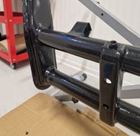 Forstilling ferdig lakkert, eller malt er vel mer korrekt, med hammerlakk. Skal tåle litt denne etter det jeg leser, og tenker den er perfekt for understell.