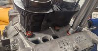 Fikk montert den ene toppen i går. Fikk lakkert kjøledekslene under sylindrene forleden og monterte de først. Nye skiver og muttere til toppene hadde jeg liggende.