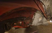 Det var ikke mye rust på denne, men i piggene bak var det noe, og litt i reservehjulsbrønnen foran. I samme slengen lager han til avtakbar bakplate.