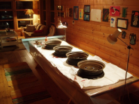 Etter pussing så rigga eg meg te på langbordet i ståvo.. Varmt lokale er viktig for att lakken nokon gong skal torka..