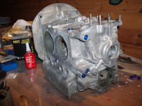 Sidan sist so har eg fått skrudd inn ploggane med loctite i blokka, dynamoen er demontert for overhaling og eg begynner snart på montering av veiv/rådar.