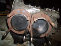 Og fresh frå idag! Har balt MYKJE med montering av stempel.. fekk ikkje biltema stempelringkompressoren til å samarbeida, klarte heller ikkje å pressa ringane saman for hånd.. men etter tips so laga eg meg eit verktøy.. fekk heller ikkje det til så eg lånte eit bedre av ein bobleguru her på Voss(du ser den oppå sylindarane) Fekk då på stempelet i sylindaren, men der satt det godt.. Etter litt feilsøking viste det seg att gapet på nokon av ringane var ALTFOR lite.. nyttar ikkje med presspassning på stempelringar.. Men etter litt filing so gjekk alt Mykje lettare! Glad Ellers vil eg sei att eg ikkje gløymde gløymeblekket...