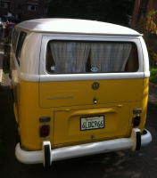 Mørk grønn patinert Bay, Klemetsrud, Oslo. Prøvde å hilse, men glemte at jeg kjørte Honda i dag...