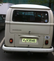 Satt på peppes på Hamar (ubåten). Så kom det forbi en volvo xc90 med bilhenger. Der stod det en oransje bay med sidevinduer bak. Rakk ikke å se reg nummer, men det var skilt på'n.